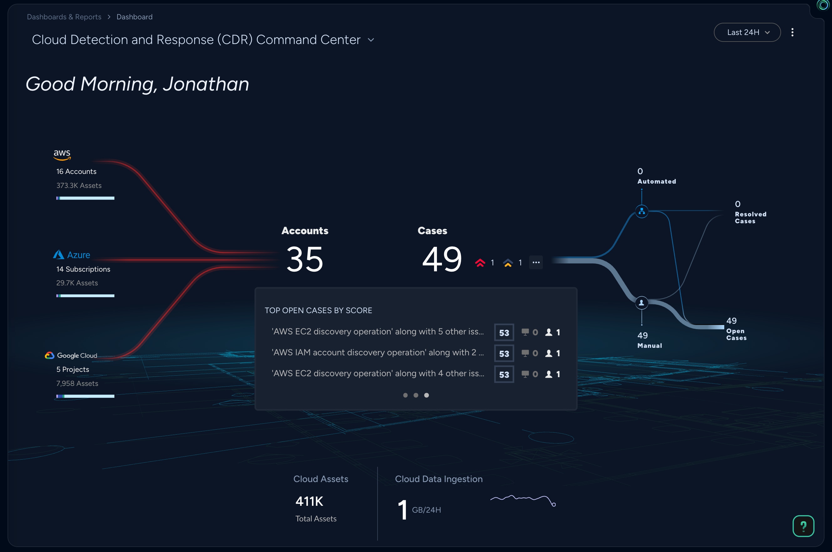 雲端態勢不再侷限於資產目錄和錯誤設定清單,而是將程式碼和階行階段脈絡應用於每個發現。SmartGrouping 可將互不相關的訊號整合為整體案例,而 SmartScore 則會依據實際世界的暴露情況和生產行為來排列訊號的優先順序—以基於實際風險的決策取代數量驅動的警示。