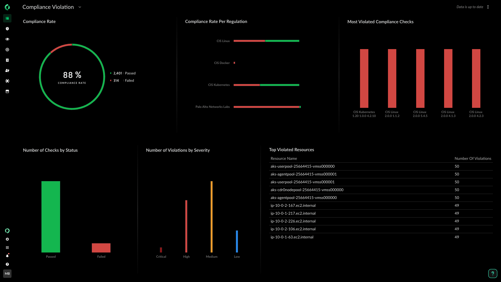 利用導引式修復功能找出並修復 Kubernetes 設定錯誤和安全風險。針對 EKS、AKS 和 GKE Kubernetes 叢集,強化 Kubernetes 狀態並符合 CIS 基準。