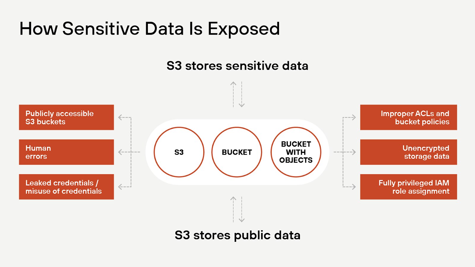 Figure 1: Potential ways that sensitive data stored in S3 buckets can be exposed.