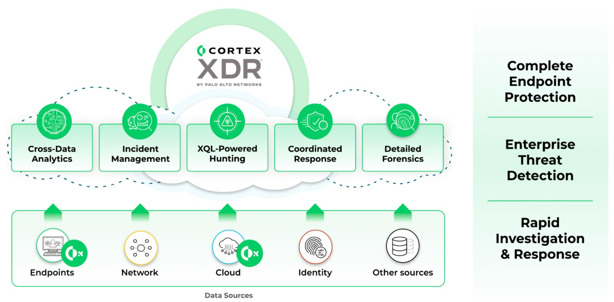 Cortex XDR 提供業界第一個 XDR 解決方案,透過分析來自 Cortex 端點和第三方資料來源的資料,提供防護、偵測和回應,以對抗威脅情勢風險。Cortex XDR 包括簡化的自動化動作,讓安全分析師在調查過程中更有效率。